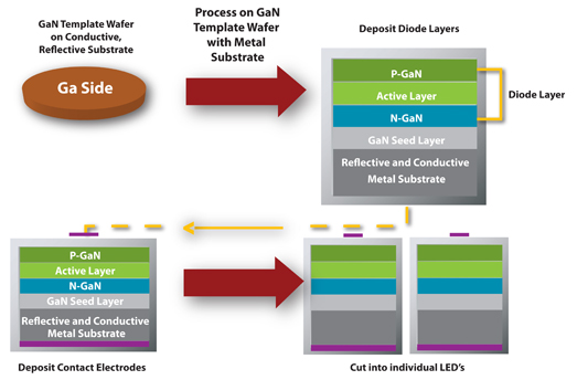 The Company's layer transfer technology can be successfully applied to fabricate GaN on Sapphire, or other suitable substrates. The primary applications for this engineered substrate are the high brightness LED (HB-LED) and LD (lased diode) markets.