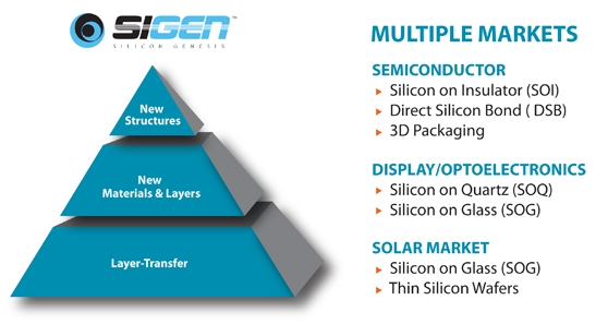 Layer Transfer Technology Processes The company's proprietary NanoCleave® (Layer Transfer), NanoBond (Plasma-activated bonding), and NanoSmooth (EpiSmoothing/Epi Thickening) process steps have allowed SiGen to become a leading provider of innovative-engineered substrates through its process and technology: enabling its customers to develop new applications with greater functionality and higher speed, while improving cost, power efficiency, and heat dissipation.